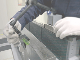 礦物鑄件又稱“人造大理石”“樹脂混凝土”,是用天然石碎料/鵝卵石、黃砂等為骨料,改性環(huán)氧樹脂等為膠凝材料,加入部分填料和外加劑經過混合攪拌、振動密實而形成的一種新型高分子復合材料。其具有的復雜外型的成型能力和整合能力,高精度,良好的吸震性、熱穩(wěn)定性及耐腐蝕性等優(yōu)勢。